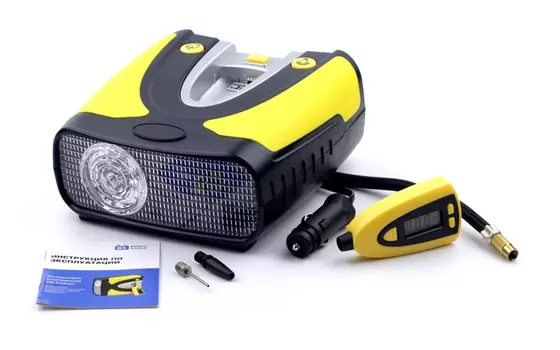 Battery Service5990 ₽Автомобильный компрессор с фонарём, защитой от перегрева, цифровым дисплеем и автоотключением. Максимальное давление 7 атмосфер, длина кабеля 4 метра, производительность 52 литра в минуту. Требует под...
