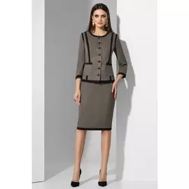 Lissana6442 ₽Юбочные костюмы 4684 | Костюм юбочный Жакет с фигурным вырезом горловины и центральной застёжкой на петлю с пуговицей. Перед с листочками в нижней части. Рукава втачные. По горловине, краю борта и низ...