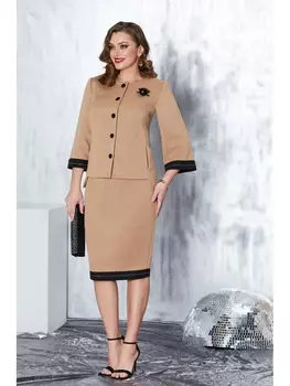 Lissana4524 ₽Костюм Lissana-3555/1 В цвете: Бежевый; Размеры: 50,52,48 | Жакет+юбка. Жакет полуприлегающего силуэта с накладными карманами (карманы функциональные) и округлым вырезом, вырез оформлен отрезной обтач...