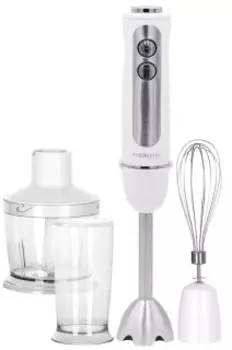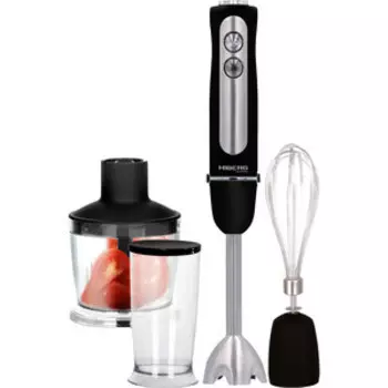 HIBERG6600 ₽Погружной блендер с максимальной мощностью 1000 Вт, 5 скоростями и турборежимом. Управление электронное, корпус из пластика. В комплекте 3 насадки: венчик, блендер и измельчитель.
