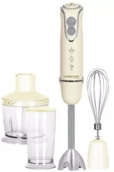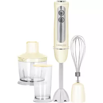 Hiberg3188 ₽Погружной блендер HIBERG HB 1040 Y, мощность 1000 Вт, объем чаши 0.5/0.6 л, 5 скоростей, режим "Турбо", бежевый цвет.