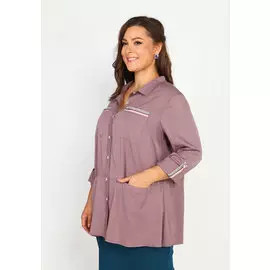 Elletto Life5855 ₽3951 ₽-32%Блузка 3522 | Рубашка женская, свободного покроя, длинной ниже линии бедер, из трикотажного полотна - "гусиная лапка". Перед с накладными карманами с клапаном, застежка планка на петли, пуговицы. Рука...