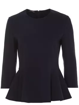 Les Copains22600 ₽15820 ₽-30%Блуза с баской | -Женственная блуза с баской от Les Copains.-Модель представлена в темно-синем цвете.-Приталенный крой, круглый вырез горловины, укороченные рукава 3/4, расклешенная баска, застежка на...