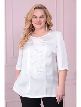 Romanovich Style4330 ₽Блузка 8-2388 | Блузка прямого силуэта. Перед с отрезной кокеткой, центральная часть из отделочной ткани. Спинка с отрезной кокеткой, декорирована кружевом, с фигурным вырезом, фиксирующимся двумя дек...