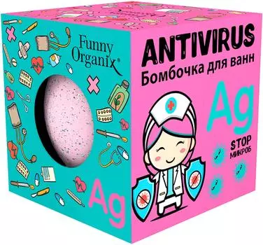 Funny Organix230 ₽Бомбочка для ванн ANTIVIRUS 140г | Бомбочка для ванн ANTIVIRUS 140г (Funny Organix). Бомбочка для ванн с серебром и экстрактом алоэ увлажняет, питает и успокаивает кожу, уменьшая раздражения. Стимулир...
