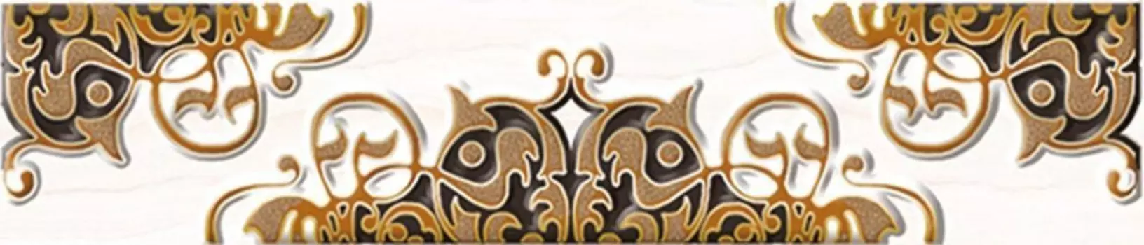 Axima180 ₽Керамический бордюр Axima | Керамический бордюр Axima Дубай B 6х28 см украшен сложным орнаментом из крестообразных мотивов - королевских лилий, нанесенных ветрозой и металлизированной глазурью. Лакони...