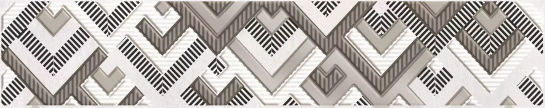 Axima123 ₽Керамический бордюр Axima | Керамический бордюр Axima Сарагоса G 9х60 см с матовой поверхностью. Украшен геометрическим рисунком, напоминающим калейдоскоп из треугольников и «шевронов» с дополнительно...