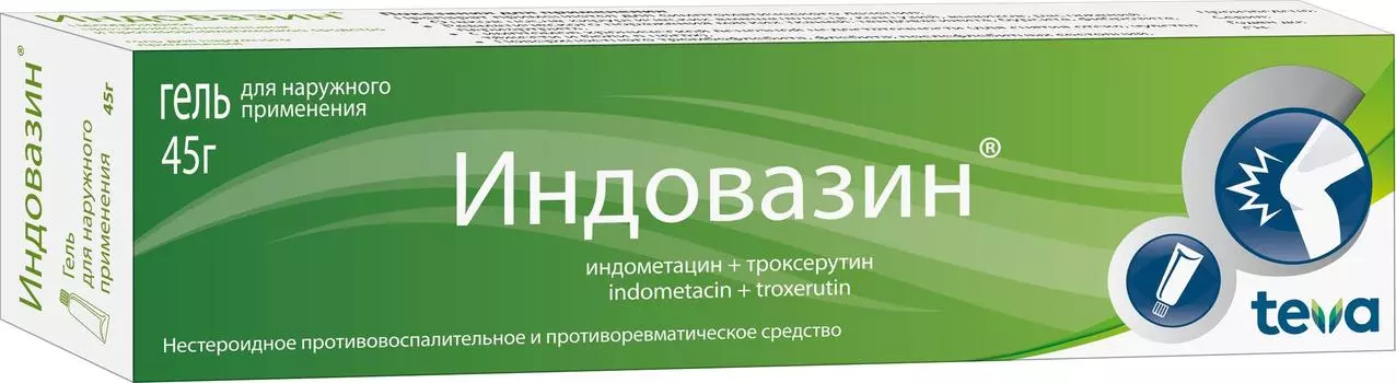 Балканфарма-Троян АД455 ₽Индовазин, 45 г, гель | гель. Категория: root/Здоровье/Ушибы, синяки