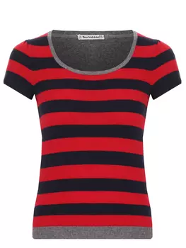 BEA YUK MUI28800 ₽20160 ₽-30%Полосатый тонкий джемпер из смесовой шерсти с кашемиром, полуприлегающий силуэт, короткие рукава, круглая горловина и рельефный эластичный пояс. Цвет красный. Материал: 80% шерсть, 20% кашемир.