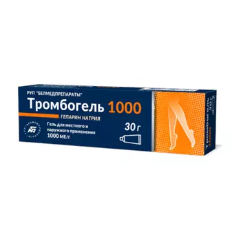 Белмедпрепараты РУП332 ₽Тромбогель 1000 гель для местного и наружного применения 30 г | Гель для местного и наружного применения Показания: Заболевания поверхностных вен: варикозное расширение вен, хроническая венозная недос...