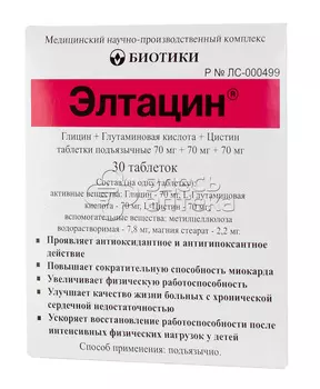 Биотики МНПК303 ₽Элтацин таблетки подъязычные 30 шт. | Код egk: 000152796. Код товара: 116657. Описание: Элтацин таблетки подъязычные 30 шт. ИНСТРУКЦИЯ по медицинскому применению лекарственного препарата ЭЛТ...