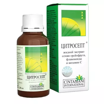 Чинтамани Поланд3928 ₽Цитросепт, капли, 100 мл | Цитросепт грейпфрутовый жидкий - биологически активная добавка.Не является лекарством.Цитросепт - биофлавоноиды стандартизированного 33% экстракта семян грейпфрута. Противог...