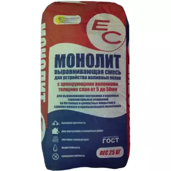 EC450 ₽Монолит наливные полы ЕС 25 кг | **Монолит наливные полы ЕС** предназначен в качестве основания для устройства горизонтального покрытия. Формирует прочный и плотный слой, подходящий для укладки каменн...