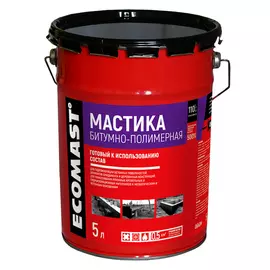 Ecomast2029 ₽Гидроизоляционная мастика ECOMAST | Гидроизоляционная мастика ECOMAST 10л, металлическая упаковка 24621 Для дерева: да. Для бетона: да. Для камня: да. Для кирпича: да. Для металла: да. Нетвердеющая: н...