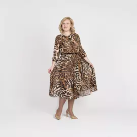 Elletto7190 ₽2099 ₽-70%Платье-макси с анималистическим принтом | Платье с круглым вырезом и рукавом 3/4 выполнено из ткани с модным анималистическим принтом. Платье шикарного кроя с расклешенной юбкой и тонким ремнем на тал...