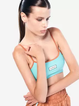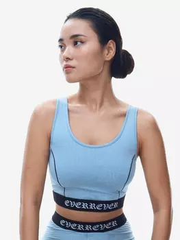Everrever5200 ₽Топ с широкими бретелями из плотного трикотажа на основе полиамида, облегает фигуру и поддерживает грудь благодаря высокому содержанию эластана. Вырез и проймы украшены белым кантом, логотип бренда ра...