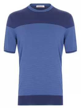 FIORONI CASHMERE59100 ₽52010 ₽-11%Футболка хлопковая | -Синяя трикотажная футболка из мягкого хлопка от FIORONI CASHMERE. -Модель полуприлегающего силуэта с короткими рукавами, рельефными манжетами, поясом и округлой горловиной с конт...