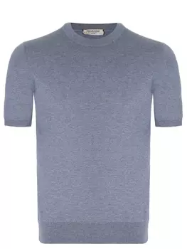 FIORONI CASHMERE51200 ₽45060 ₽-11%Футболка хлопковая | -Голубая трикотажная футболка из мягкого смесового хлопка от FIORONI CASHMERE. -Модель полуприлегающего силуэта с короткими рукавами и круглым вырезом горловины с контрастной окан...