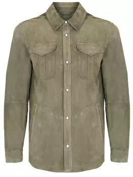 FIORONI CASHMERE268800 ₽236540 ₽-12%Рубашка из мягкой замши цвета хаки от FIORONI CASHMERE. Имеет отложной воротник, длинные рукава с манжетами, два прорезных боковых кармана и два нагрудных накладных кармана с клапанами, застежка-кнопк...