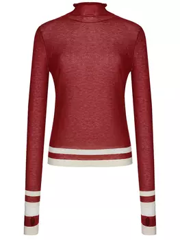 FREE AGE23300 ₽16310 ₽-30%Красная шерстяная водолазка с метанитом от FREE AGE. Полуприлегающий силуэт, высокий ворот с драпировкой, длинные рукава как митенки с прорезью для большого пальца, контрастная окантовка деталей.