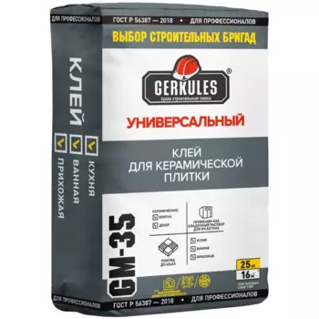 GERKULES310 ₽Клей для плитки Gerkules Универсальный GM-35 25 кг | **Клей для плитки Gerkules Универсальный GM-35** - клеевая смесь на цементной основе применяется для укладки на стены керамической плитки, а также ...
