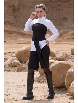 Golden Valley2746 ₽Корсет с застежкой на тесьму-молнию в среднем шве спинки. Перед и спинка с рельефами от верхнего среза до низа. По талии пояс-завязка. Доступен в размерах 42, 44, 46, 48, 50 и 52. Цвет: черный. Матери...