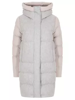 HETREGO98500 ₽68950 ₽-30%Серый удлиненный стеганый пуховик от HETREGO с колор-блоком из смесового кашемира. Полуприлегающий крой, длинные рукава, прорезные карманы, воротник-стойка, объемный капюшон и застежка на молнию с вет...