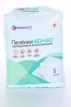 Интертекс ООО213 ₽Пеленки Клинса впитывающ однораз 60х60 см, 5 шт | None. Категория: root/Товары для детей/Гигиена и уход/Пеленки/клеенки