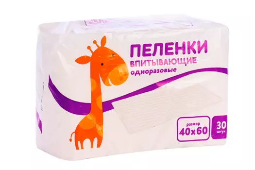 Интертекс ООО392 ₽Пеленки серия Жираф 60х40 см, 30 шт | None. Категория: root/Товары для детей/Гигиена и уход/Пеленки/клеенки