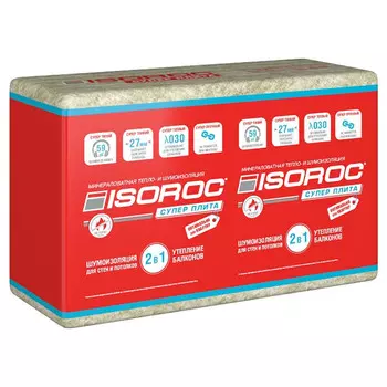ISOROC2220 ₽вата минеральная Isoroc Супер Плита 27 мм 10 м2 | Коэффициент теплопроводности: 30 Вт/(м К)Материал: минеральный утеплитель на основе кварцаДлина: 1170 ммШирина: 610 ммТолщина: 27 ммКоличество в упако...