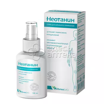 КоролёвФарм391 ₽Неотанин 100 мл спрей | Код товара: 00-00002531. Описание: Неотанин 100 мл спрей При остром воспалении с мокнутием применяется НЕОТАНИН спрей: противовоспалительное, подсушивающее и вяжущее дейс...