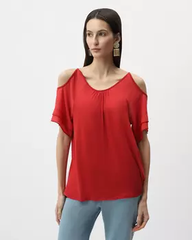 Lilly Bennet4990 ₽Блузка прямого силуэта с открытыми плечами и рукавами-реглан, имеющими эффект двухслойности.