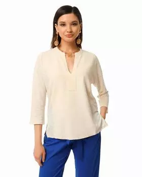 Maria Bellentani12999 ₽6299 ₽-51%Блузка | Вискоза и лен Круглый вырез V-образный вырез Рост модели: 176 Параметры модели: 79-63-90,5 Размер на модели в бежевом цвете: 44 На модели в бежевом цвете: Брюки - 177207 Сандалии - 17732...