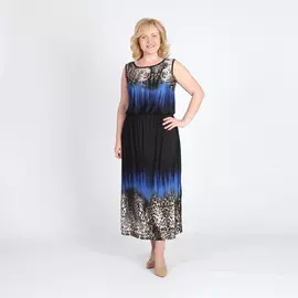 Милада4990 ₽1699 ₽-65%Платье-макси с анималистическим принтом | Женское платье изготовлено из летней холодной вискозы с анималистическим принтом, без рукавов, горловина округлена. Линия талии посажена на резинку. По бокам ...
