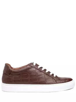 PALINI130000 ₽117000 ₽-10%Кеды из кожи крокодила PALINI | -Коричневые кеды ручной работы из натуральной кожи крокодила от PALINI. -В качестве подкладки – гладкая кожа теленка. -Кожа для создания обуви поставляется лучшими фабр...
