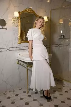 Post Meridiem17500 ₽Платье миди с длинным рукавом и юбкой «годе» | Силуэтное платье в длине миди в цвете айвори с юбкой “годе”, которое, несомненно, придает изюминку обладательнице данного изделия. Длинный втачной рукав ...