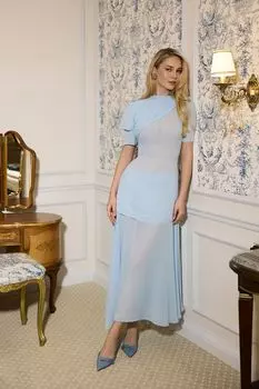Post Meridiem29300 ₽Платье-миди из шифона светло-голубого цвета с асимметричным кроем и драпировками. Оно сочетает в себе женственность, нежность и загадочность, оставаясь полностью закрытым, но чувственным.
