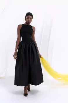 Post Meridiem27300 ₽Платье-миди в черном цвете с пышной юбкой. Лиф без рукавов облегает фигуру, создавая нежный и женственный образ.
