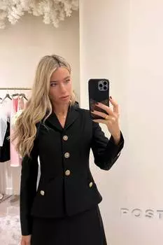 Post Meridiem28800 ₽Жакет приталенного силуэта с V-образным вырезом и декоративными пуговицами для элегантного образа. Цвет: черный.