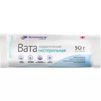 Русвата ООО37 ₽Вата хирургическая стерильная Клинса 50г | itemGroup: 1. itemGroup: 5. itemGroup: 6. itemGroup: 71. itemGroup: 73. itemGroup: 80. itemGroup: 81. itemGroup: 82. itemGroup: 87. itemGroup: 88. itemGroup:...