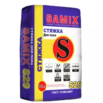 SAMIX240 ₽Ровнитель для пола Samix S-29 25 кг | **Ровнитель для пола Samix S-29** помогает выровнять кривой пол и создать поверхность без швов. Используется на плитах перекрытия, цементных стяжках, бетоне. Раст...