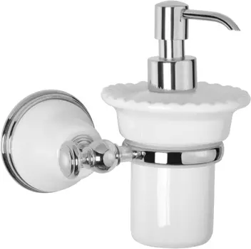 Tiffany World14166 ₽Дозатор белого и бронзового цвета, изготовленный в Италии из керамики и латуни. Имеет ретро-стиль, округлую форму и подвесной монтаж.