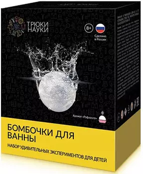 Трюки Науки699 ₽Набор удивительных экспериментов Бомбочки для ванны – Аромат рафаэлло | Что это за удивительная конфетка? Почему она умеет растворяться в воде и шипеть? С этим развивающим набором ребёнок не только по...