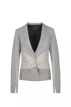 Vespucci33500 ₽Роскошный женский пиджак из лёгкого льна серого цвета с контрастными бежевыми замшевыми вставками спереди и на внутренней стороне рукавов, а также с разрезами снизу на уровне манжет.