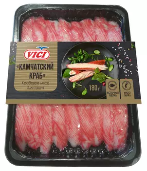 Vici225 ₽Крабовое мясо Vici Камчатский краб охлажденное 180 г | nan Углеводы: 10.0000. Жиры: 0.2000. Энергетическая ценность: 81.6000. Страна-производитель: Россия. Белки: 10.0000. Состав: Сурими (фарш рыбный;...