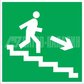 ЗнакПром31 ₽Знаки безопасности ЗнакПром | Знак E13 Направление к эвакуационному выходу по лестнице вниз (Пленка 200х200 мм) Тип полиграфии: Знак. Функционал: Знак безопасности. Материал: Плёнка. Тип: Эвакуационны...