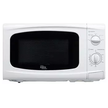 MAKING OASIS EVERYWHERE6126 ₽СВЧ-печь OASIS соло 20 л белого цвета, мощность 700 Вт. Размеры: 44,6х35,8х24,3 см. Гриль и конвекция отсутствуют. Переключатели поворотные.