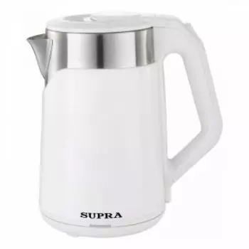 SUPRA1085 ₽Электрический чайник Supra KES-1897 белого цвета с двухслойным корпусом из нержавеющей стали и пластика.