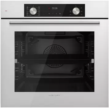 HiSTORY53990 ₽Электрический духовой шкаф HISTORY OE7710C.FWH | Тип духовки: электрическая независимая; Объем духовки: 77 л; Мощность подключения: 3.3 кВт; Переключатели: поворотные, сенсорные; Утапливаемые переключ...