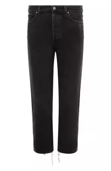 Pence21950 ₽Черные джинсы прямого кроя с небольшими потертостями на карманах и длинными необрезанными нитями по краям брючин. Изготовлены из мягкого плотного хлопка с искусственными заломами.